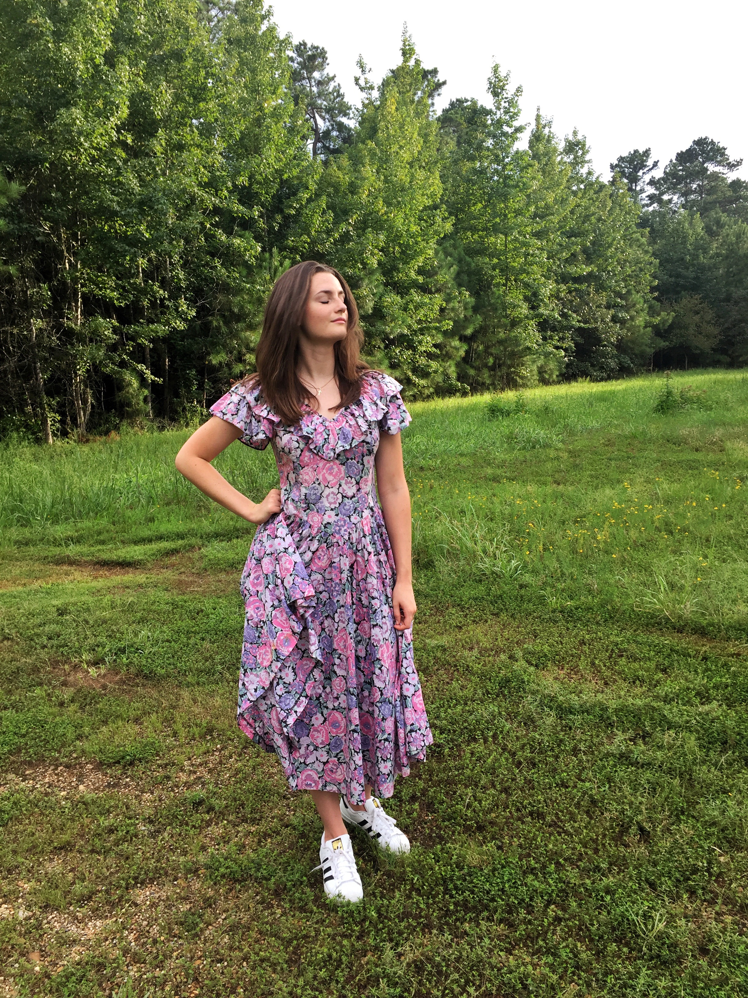 A flouncy sundress made practical by my favorite shoes of the summer; Addidas Superstars, is perfect for long, end-of-summer days. (Also for opening presents!)