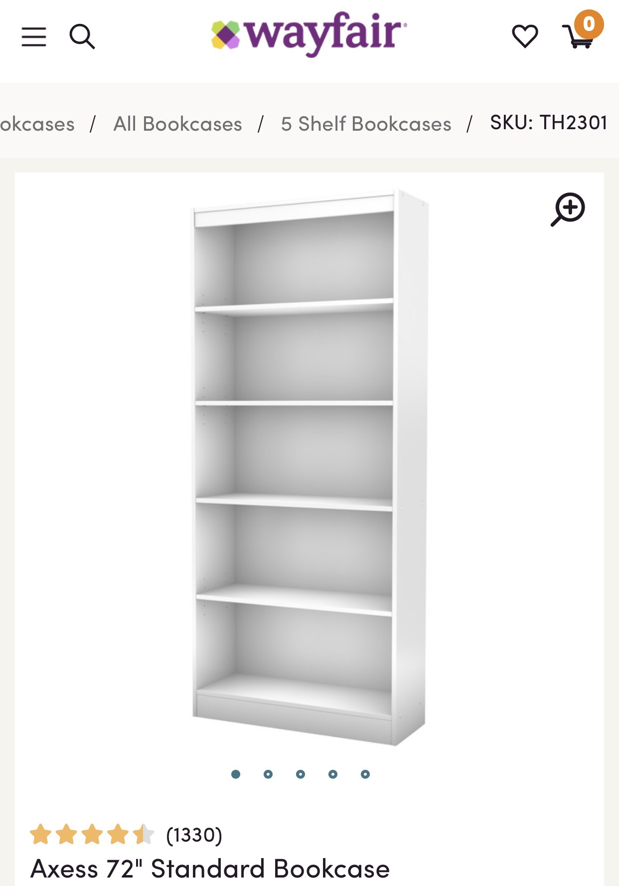 With these three criteria in mind I started searching online. Wayfair (HGTVs favorite brand) had some bookshelves, but most (save one) were either too small or impractical/unattractive. Same deal on Amazon. Thwarted thus far I turned to Ikea and after navigating the world’s largest website menu I finally managed to find what I was looking for. I narrowed it down to three (plus the aforementioned Wayfair shelf).