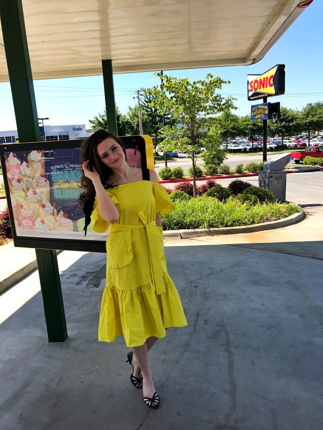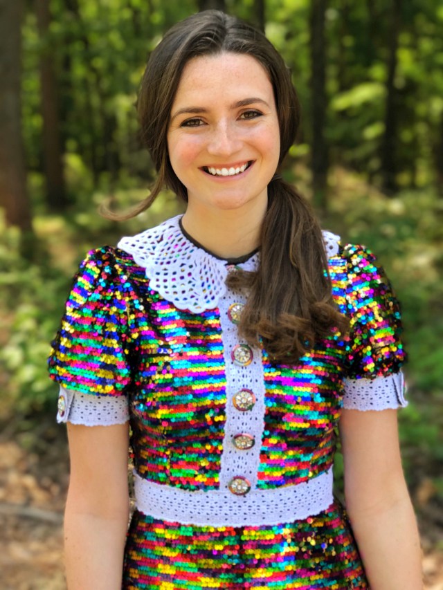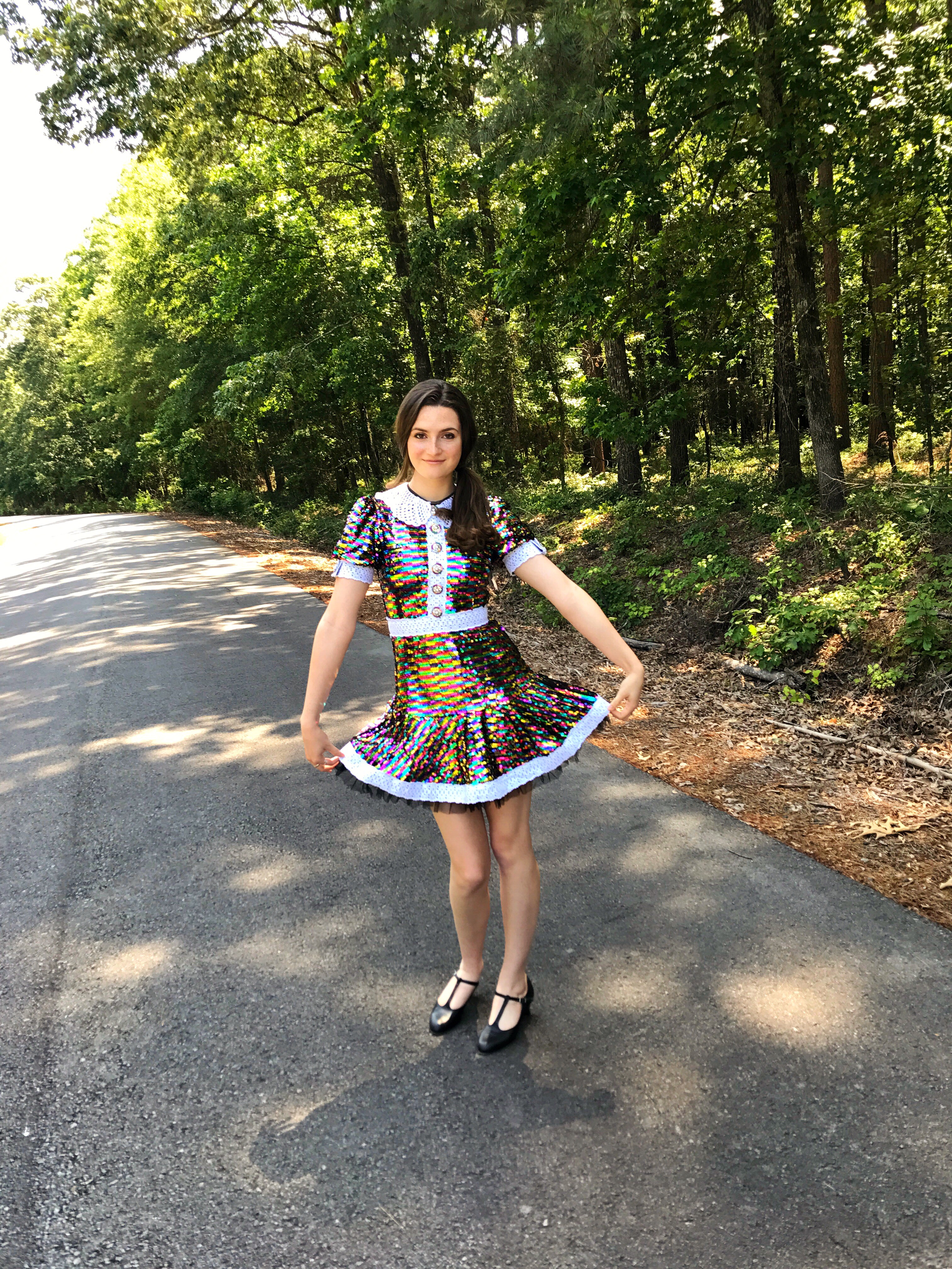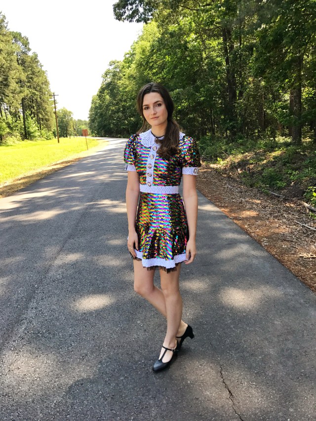 This has mostly to do with the fact that in my experience they fall off, get bent and after approximately half of one wear the dress doesn’t look the same as when you put it on. (Which is probably my fault for being rough on clothes but whatever). However, against my prior judgements when I saw this dress I knew we were meant to be. I am so glad I did because it is so much fun to wear! It legitimately reflects light like some kind of colorful disco ball, (which I personally view as a plus to any garment). Stay groovy! (I’ll stop now)