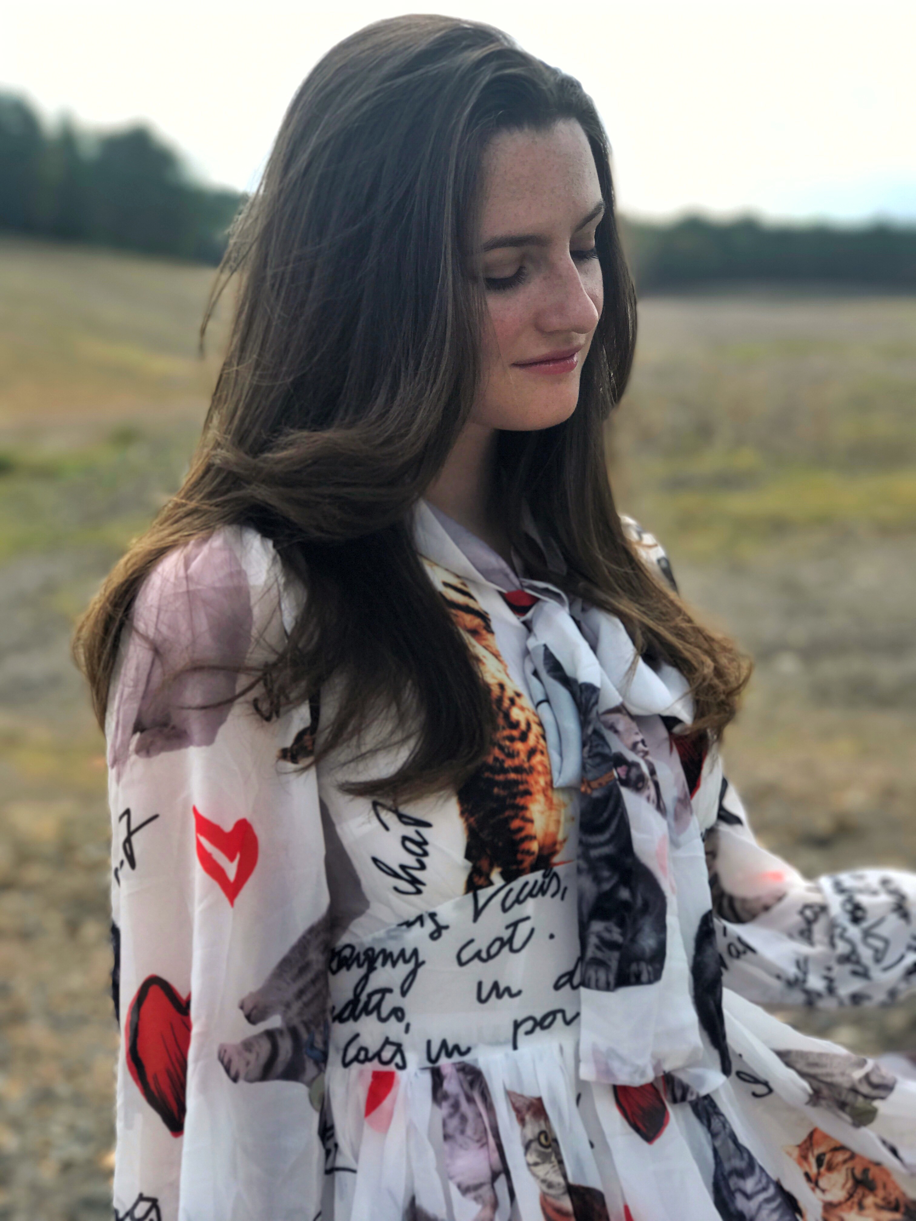 First off, I know. Isn’t it amazing? A timelessly romantic silhouette, ready to sink into the river à la Ophelia but with bold graphic script and photo printed kittens to make it exactly the sort of statement piece I love. This kind of dress needs an equally trendy shoe, so my Ash platforms give me that fashion feel (and the height I love, fight me I like being extra-tall).